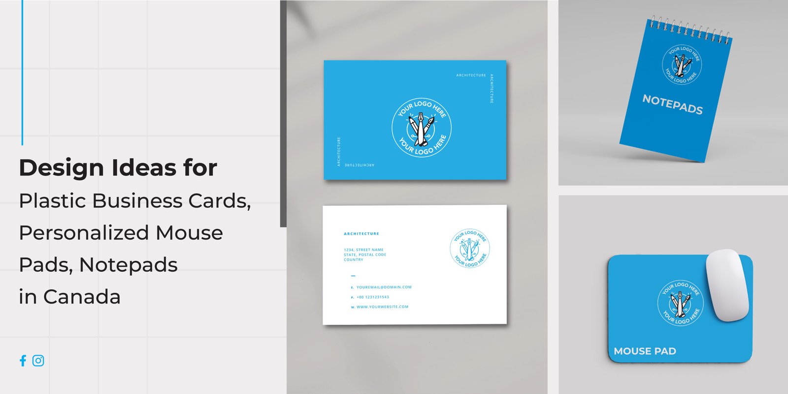 Plastic business cards:In business today, a logo is just the start. You want ways to stick in people's minds. Try plastic business cards that last. or mouse pads that sit on desks all day. And notepads made in Canada that people use a lot. These turn simple items into smart ads.