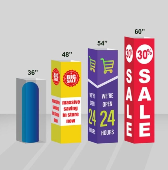 Bollard Covers are a functional but affordable choice that allows you to turn every car park, pedestrian shopping area, or store entrance into a temporary advertising billboard. They easily fit over bollards and display the intended message. The product is made with durable, weather-resistant coroplast which is suitable for temporary outdoor use. Various sizes and multiple coating options are available. We also offer seam taping to assure that your bollard covers are 100% waterproof. Shop at wholesale prices.