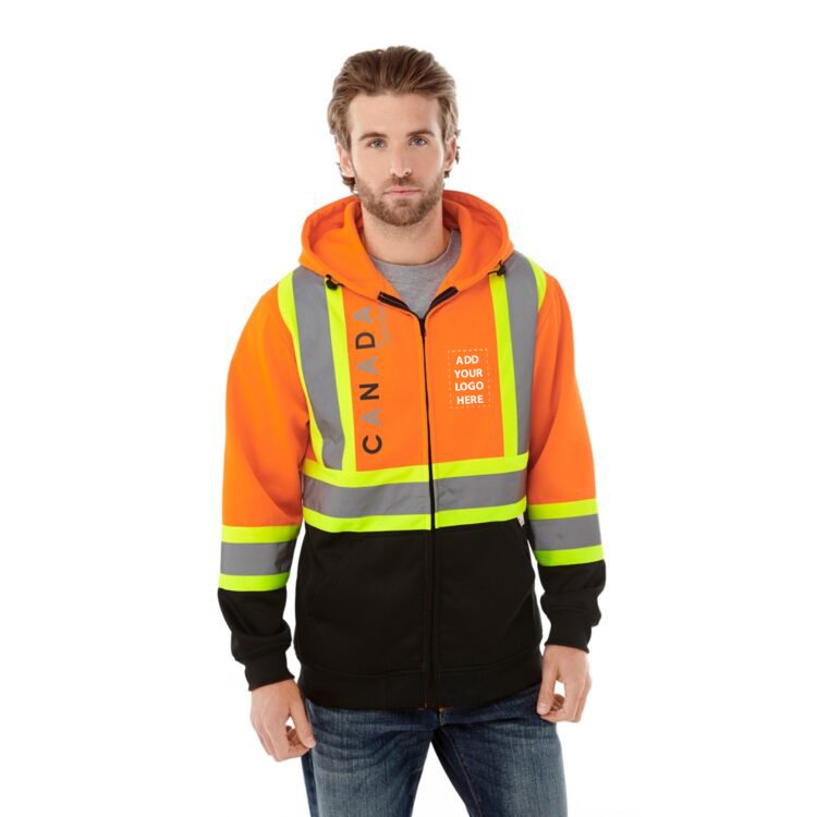 Custom Printed Hi-Vis Full Zip Hooded Sweatshirt