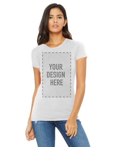 Our Bella Canvas ladies’ t-shirts are ready to be printed with your client’s logo or design. With comfort and style, they’re called the women’s favorite tee.