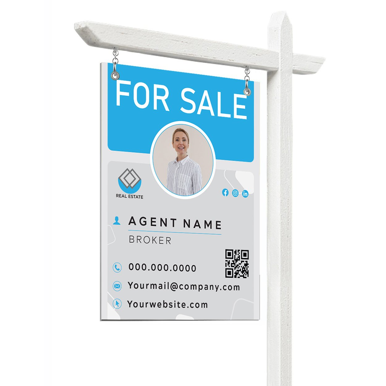 Custom For Sale Signs can add to the curb appeal of real estate listings and increase the chance of a quick sale. The product is made with either Coroplast or Composite Aluminum (Alupanel) printed on both sides. Both materials are durable and weather-resistant but Alupanel is mostly favoured for long-term outdoor applications. Our signs come without hardware but you can order a metal post for your sign at an additional cost. We offer various sizes plus multiple coating options for added protection.