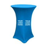 Crafted from premium elastic polyester fabrics available in a diverse array of colors, circular stretch table covers enhance the visual appeal of event tables, exuding a polished and professional look. These covers also serve as a perfect canvas for showcasing your business through custom printing, showcasing your logo or promotional message, thereby amplifying your booth’s impact with an added touch of sophistication.
